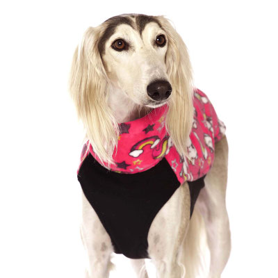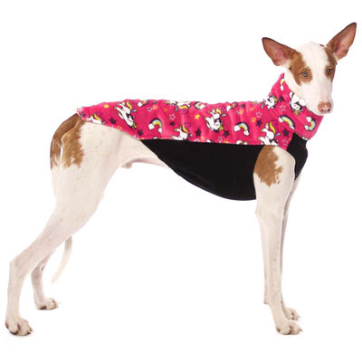 Der süße Hachico UNICORN Jumper hat eine praktische und bequeme Passform für etwas voluminösere/kräftigere Windspiele und ist im Brustbereich weiter geschnitten.